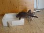 זה התחיל מזה ששנה שעברה כשהם הבינו שבחוץ מעניין יותר הם באמת ובתמים התחילו לעלות על סף הארגז אבל הפחד שיפלו ממנו לרצפה ויקבלו מכה הוא זה שהביא אותנו להוסיף את הדלת. מעבר לזה לא דרושה יותר מדי עבודה. שני מגבות שהוקרבו לתהליך ההמלטה (ויזרקו מנהסתם לפח אחר כך) קיבלו מנת ניקיון עם חומר נגד פרעושים והונחו בארגז כמו כן השל של קנזו וזואי שהגיע ישירות מהודו הונח כך שיכסה את החלק העליון של המיטה.