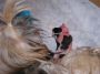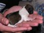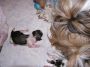 הצמדתי לאנג'ל רדיאטור לשמור על החום והכנתי הרבה מגבות, מגבונים לחים, תמיסת חיטוי, כפפות , ומספריי מנתחים (מערכה שיש לי משנה א' של הלימודים) וכל מה שיכלתי לעשות מרגע זה זה לשבת לעודד וללטף את כלבתי הבוכייה שכבר התחילה ללחוץ בצירים בחוזקה . . . ראיתי שקשה לה וכל מה שיכלתי לעשות היה להיות שם לצידה לידאוג שיהיה לה חם ונח, היא החלה לנוע בחוסר מנוחה כאילו לא מוצאת לעצמה תנוחה ותוך כדי לחיצות עזות השעה (1:56 – שעת לידה) יצא הגור הראשון לאוויר העולם, לא בזבזנו במן והתחלנו להנשים אותו בכוחות משותפים אני ואנג'ל היא בליקוקים ואני במסאג' עדין בחזה גם כדי שיצאו כל הנוזלים מפיו ויתחיל לנשום , אנג'ל שלי ניראתה כאילו כל חייה יחלה לרגע הזה שיהיה לה גור משלה ולא הפסיקה לידאוג שיהיה לו חם, ושיאכל וללקק אותו ללא הפסק