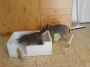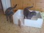 זה התחיל מזה ששנה שעברה כשהם הבינו שבחוץ מעניין יותר הם באמת ובתמים התחילו לעלות על סף הארגז אבל הפחד שיפלו ממנו לרצפה ויקבלו מכה הוא זה שהביא אותנו להוסיף את הדלת. מעבר לזה לא דרושה יותר מדי עבודה. שני מגבות שהוקרבו לתהליך ההמלטה (ויזרקו מנהסתם לפח אחר כך) קיבלו מנת ניקיון עם חומר נגד פרעושים והונחו בארגז כמו כן השל של קנזו וזואי שהגיע ישירות מהודו הונח כך שיכסה את החלק העליון של המיטה.