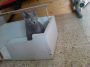 אחרי שהרצפה התייבשה והסתיימו ניקיונות פסח באופן חגיגי, אפשר היה סוף סוף להפתיע את זואי ולפצוח בטקס הוצאת מיטת ההמלטה. החתולה שנכנסה היום לשבוע השביעי להריונה, עמדה על השולחן ונהנתה מהנוף, כשלפתע קלטו עיניה כי על הרצפה הונחה לה קופסא לבנה מעץ. השנה לא היה ספק כי החתולה זיהתה את הקופסא, בכל זאת, פעם שלישית זה כבר די דרגת מומחית, הקטנה מייד קפצה לרצפה (כשהיא שוכחת לחלוטין שהיא כבר לא חתול אחד), החלה מרחרחת את המיטה ומחכה בזמן שאני גוזר את הבדים שישמשו השנה לקישוט וריפוד המיטה.
